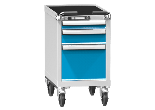 Premični zabojnik je opremljen s centralnim mehanizmom za zaklepanje in zaklepanje predalov. Predali so bistven element za shranjevanje, zato izpolnjujejo visoke zahteve glede trdnosti in stabilnosti. Predali delavniškega vozička morajo biti vedno opremljeni z napravo za zaklepanje, da se med premikanjem ne bi samovoljno odprli.