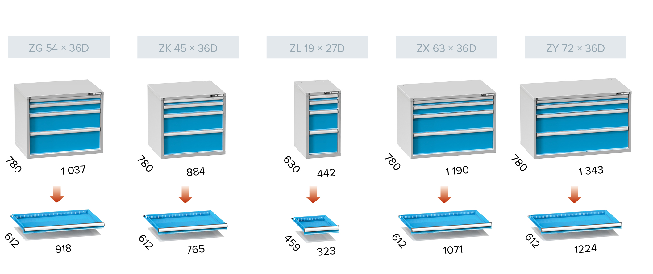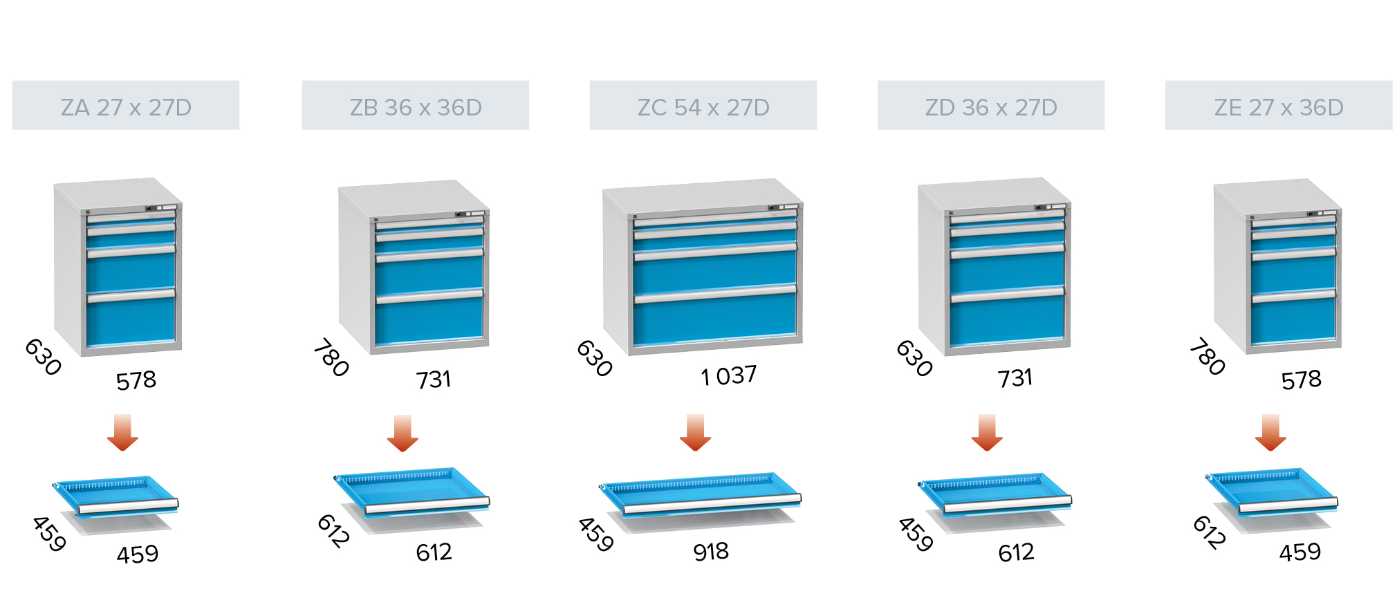 Tlorisi ZA, ZB, ZC, ZD, ZE, ZG, ZK in ZL so na voljo v osmih višinah.